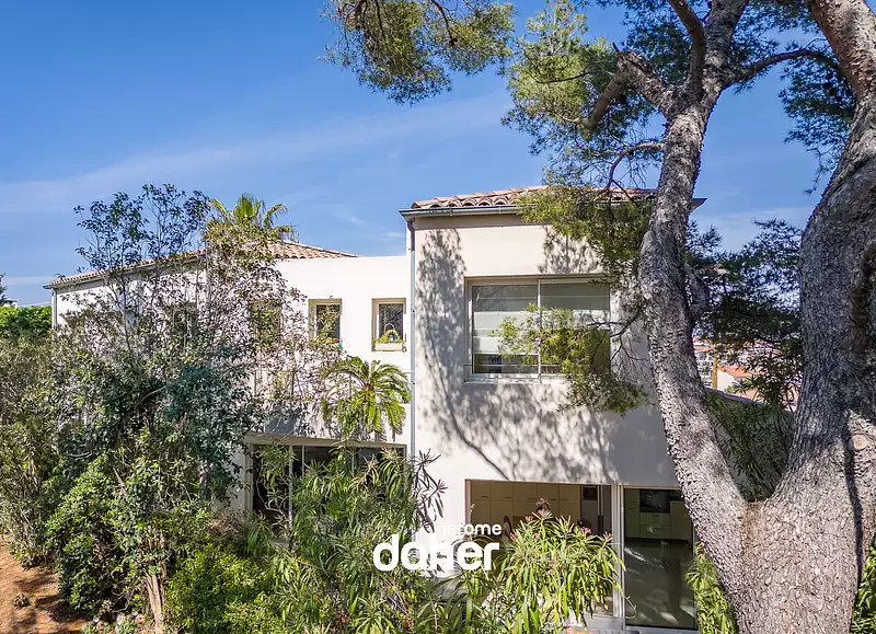Bompard, au calme et proche de la mer, dans un environnement calme et verdoyant, belle maison récente sans vis-à-vis de 200m2 disposant d'un garage en sous-sol de 100m2. Facile à vivre, elle dispose d'un grand salon traversant s'ouvrant sur de grandes terrasses bénéficiant de plusieurs orientations idéales pour des moments de convivialite entre amis ou en famille. La grande cuisine de 30m2 toute équipée pourra accueillir de grandes tablées trés confortablement.On trouve également à ce niveau une salle de douche avec WC invité. De larges marches nous emmènent au premier niveau qui dispose d'une belle suite parentale bénéficiant de sa propre salle de bain, d'un WC, d'un dressing et d'une jolie terrasse privative. Trois autres grandes chambres lumineuses, ensoleillées avec placards intégrés se partagent une salle de douche avec double vasque et un WC séparé. Belles prestations (pompe à chaleur, double vitrage). Le sous-sol de la maison de plus de 100m2 offre un grand garage permettant d'y garer facilement 4 voitures ainsi que deux caves dont une réfrigérée.
