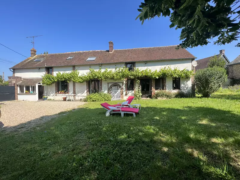 A 5 min de la RN12, dans charmant village, au calme ; une longère pleine de charme exposée plein SUD avec ses poutres et ses tomettes offrant de beaux volumes.