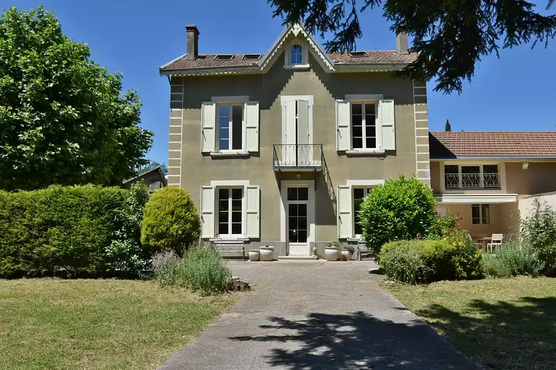Dans votre agence ORPI, bas de Miribel, à proximité de toutes les commodités, transports (gare,...), venez visitez cette maison de charme de 200m² habitables pouvant accueillir une grande famille avec ses 6 chambres et 3 salles d'eau. Au rez-de-chaussée: entrée, salon ouvrant sur le jardin, séjour, cuisine équipée, buanderie et salle d'eau. Au 1er niveau: 4 chambres, un bureau. Au 2ème niveau, vous trouverez 2 chambres supplémentaires. Il y a une salle d'eau et un WC par niveau. Sur la parcelle de 1400m², vous trouverez un grand garage double pour abriter vos véhicules et un joli jardin paysagé.