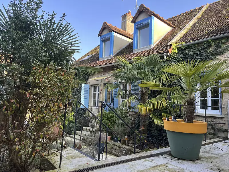 Dans un village au calme, une remarquable maison rénovée avec goût et respect des éléments d'origine. Dalles de Bourgogne, pierres et poutres apparentes. Chauffage centrale gaz de ville, deux cheminées avec poêles à bois, raccordement au tout-à-l'égout, double vitrage partout, DPE :C, taxe foncière : 737€. Piscine (2020) chauffée par pompe à chaleur réversible, couverte par une véranda thermo isolante.