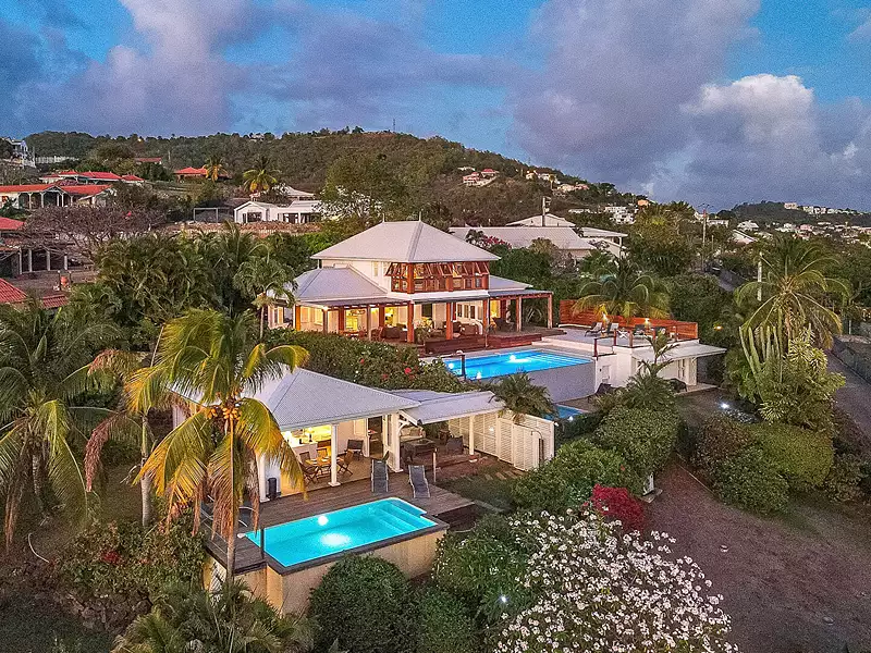 MARTINIQUE - Case Pilote Sublime propriété face à la mer des Caraïbes composée de 3 habitations : La villa principale d'environ 105m² comprend au rez-de-chaussée une vaste pièce de vie avec une cuisine ouverte donnant sur une grande terrasse et la piscine surplombant la mer, deux chambres et une salle d'eau. A l'étage, une grande suite parentale avec un espace détente et une vue exceptionnelle. La deuxième villa d'environ 60m² comprend une pièce de vie avec une cuisine ouverte, deux chambres et une salle d'eau. Elle est de plain pied avec une grande terrasse et une piscine. Une troisième habitation attenante à la villa principale d'environ 32m² comprend une pièce de vie avec une cuisine, une chambre et une salle d'eau. Elle possède également sa propre piscine et sa terrasse. Une vue mer à couper le souffle, beaucoup d'ouvertures, magnifique domaine, de nombreuses possibilités s'offrent à vous.