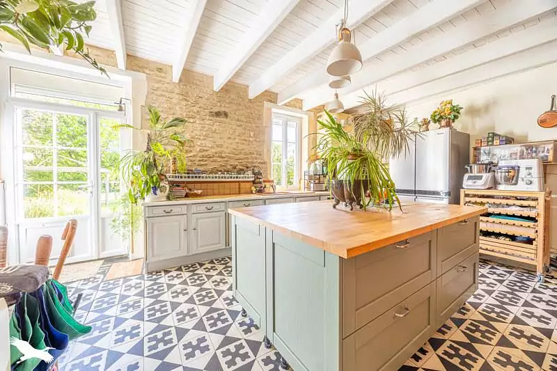 Moins de 15min de Surgères. Maison en pierre avec du cachet : comprend cuisine dinatoire, salle à manger, bureau, WC, salon et buanderie. A l'étage, palier desservant 5 chambres et une salle de bain avec WC. Chai d'environ 140m². Jardin intimiste de plus de 1000m² entièrement clos, sans vis à vis et piscinable.