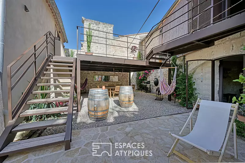 Magnifique maison de village rénovée, nichée dans le charmant village de Saint-Geniès-des-Mourgues. Cachée des regards indiscrets, cette propriété allie charme d'antan et modernité, offrant un cadre de vie exceptionnel. Dès l'entrée, le grand portail de fer s'ouvre sur un passage voûté, dévoilant la beauté authentique et apaisante de ce lieu unique. Le bois, la pierre et les végétaux s'entrelacent harmonieusement, créant un environnement enchanteur. La bâtisse principale, une ancienne maison rénovée avec soin, a su préserver son caractère tout en intégrant des éléments modernes essentiels. Portes, fenêtres, électricité, cuisine : tout a été repensé avec un profond respect pour l'histoire du lieu. A l'étage, l'espace de vie privé se compose de deux pièces lumineuses donnant sur une superbe terrasse orientée plein sud, idéale pour profiter des rayons du soleil en hiver. La cuisine rehaussée, spacieuse et dotée de nombreux rangements, ravira les amateurs de gastronomie. Un couloir mène à un WC séparé et élégamment décoré, une chambre confortable et une salle de bain. Au bout du couloir, la suite parentale vous attend avec sa salle d'eau privative et un accès direct à une autre terrasse extérieure et intimiste. La grange attenante a été métamorphosée : au rez-de-chaussée, vous trouverez une cuisine d'été et une chambre voûtée avec point d'eau et WC, parfaits pour accueillir vos invités. A l'étage, un loft aux poutres apparentes et à la structure métallique moderne crée un espace de vie indépendant, idéal pour un studio ou un bureau. Dans une ambiance troglodyte, une chambre voûtée et sa salle d'eau ont été aménagées, offrant un cadre unique et intime. Deux autres pièces voûtées, actuellement utilisées comme ateliers, peuvent être réaménagées selon vos besoins et envies. Cette propriété exceptionnelle est une opportunité rare de vivre dans un cadre historique tout en bénéficiant du confort moderne. Ne laissez pas passer cette chance unique de devenir propriétaire de ce joyau caché dans un village à quelques minutes de Baillargues et Castries. Les informations sur les risques auxquels ce bien est exposé sont disponibles sur le site Géorisques : www.georisques.gouv.fr CLASSE ENERGIE : D - 96 / CLASSE CLIMAT : B -7 Montant moyen estimé des dépenses annuelles d'énergie pour un usage standard, établi à partir des prix de l'énergie des années 2021, 2022, 2023 : entre 2050 euros/an et 2790 euros/an. Contact : Flavie, 07.67.41.53.68 Flavie LYONNET (EI) Agent Commercial - Numéro RSAC : 943394353 - MONTPELLIER.