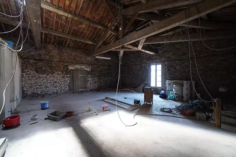 Corps de bâtiment d'une surface totale de 600 m² , composé d'un hangar de 176 m², un garage de 160 m², d'une remise en partie aménagée en maison d'habitation comprenant un séjour, une chambre, cinq pièces dont une de plus de 100 m², une salle d'eau W.C. Jardin de 700m²