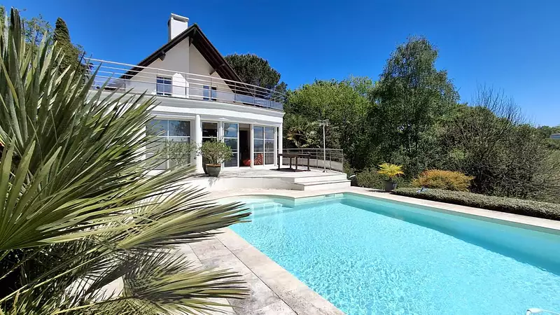 Implantée sur un terrain arboré avec une belle piscine et un solarium en roof top, la villa bénéficie d'un cadre paisible sans vis-à-vis, propice à la détente. Garage, buanderie et rangements complètent ce bien aux prestations de qualité.