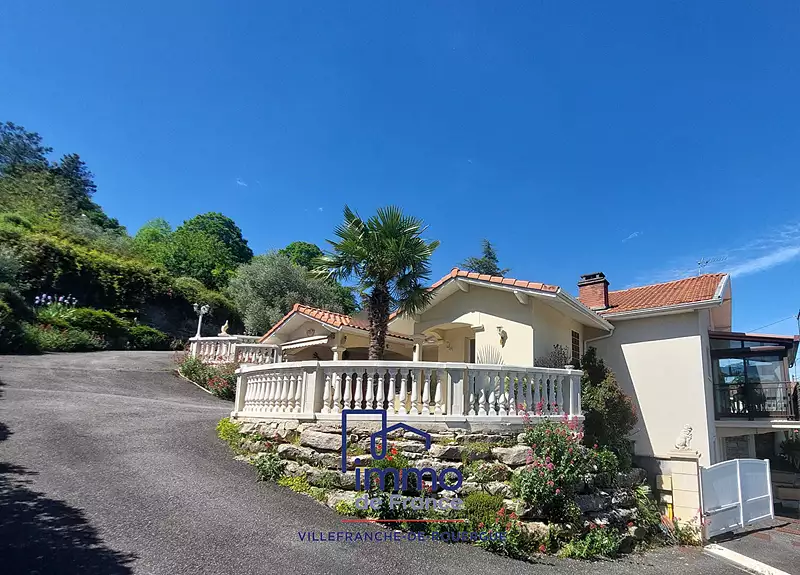 Construite en surplomb de la ville, cette maison a été rénovée avec des matériaux haut de gamme en 2004. Depuis lors, ont été réalisés des aménagements menant cette maison à une excellente performance énergétique, prestations fonctionnelles avec l'installation d'un ascenseur desservant tous les niveaux, structurelles et où tout est pensé pour la praticité et le confort. L'habitation principale de plain-pied se compose d'un hall avec placards, WC indépendant, cuisine équipée, pièce de vie ouvrant sur véranda offrant ainsi une vue exceptionnelle sur la ville, deux chambres, salle d'eau, cuisine d'été, atelier de création ou bureau. En combles on trouve une mezzanine faisant office de bureau, WC et grenier. Le rez de chaussée offre un appartement T2 de 53m² avec cuisine équipée ouverte sur pièce de vie, SdB complète, WC. Garage pour trois véhicules, caves, cellier, buanderie, chaufferie. Prestations haut de gamme avec un chauffage mixte par le sol avec pompe à chaleur réversible ou chaudière gaz de ville, splits récents, VMC, isolation par l'extérieur... Les aménagements extérieurs offrent une terrasse de 60m² côté nord, une autre coté sud. Un sentier sinueux en enrobé nous mène à la partie haute du terrain sur lequel sont aménagés trois chalets dont un est équipé d'une kitchenette, salle d'eau et WC. Présence d'un atelier et d'un poulailler rattaché à une volière. Cette maison singulière et suréquipée va vous offrir un confort optimal où il fera bon vivre. A deux pas du centre-ville et de toutes les commodités. A voir sans tarder. (5.00 % honoraires TTC à la charge de l'acquéreur.)