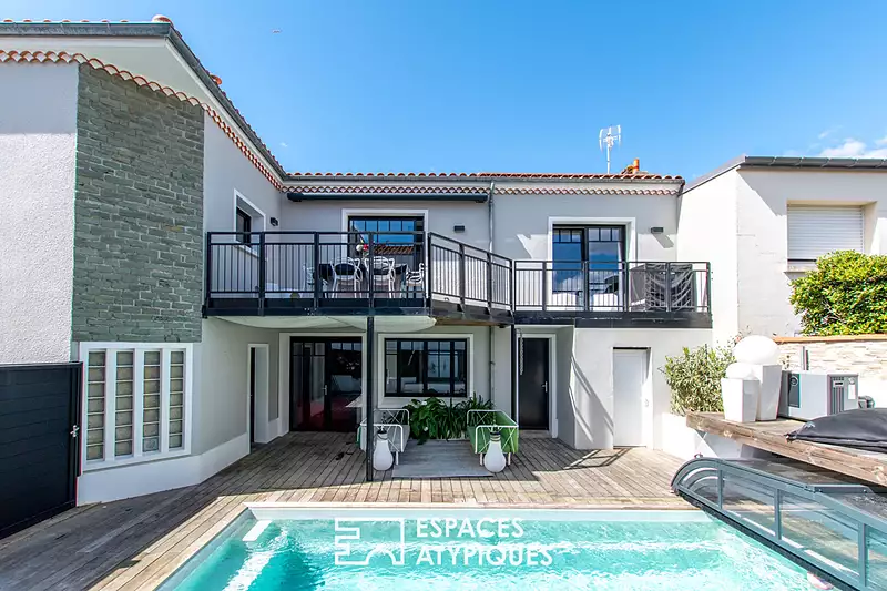 Dans le quartier très prisé des Présidents, aux Sables d'Olonne, à deux pas de l'océan, se dévoile cette villa au charme rare, comme une parenthèse enchantée entre raffinement et douceur de vivre. D'une surface généreuse de 201 m², elle cultive un art de vivre résolument balnéaire, sublimé par une piscine à l'abri des regards. Dès l'entrée, le ton est donné : volumes harmonieux, finitions soignées et lumière omniprésente. L'escalier, véritable pièce maîtresse, guide vers une pièce de vie baignée de clarté, prolongée par un balcon avec aperçu mer ? invitation subtile aux apéritifs dorés de fin de journée. Une cheminée contemporaine y réchauffe les hivers, tandis que la cuisine, minimaliste et élégante, s'ouvre sur une terrasse inondée de soleil, promesse de déjeuners au bord de l'eau. Côté nuit, la suite parentale à l'étage se vit comme un cocon : dressing-boudoir, salle d'eau aux accents design, et surtout, un accès direct à la piscine pour démarrer la journée au rythme de l'eau. Un bureau discret, baigné de lumière, complète ce niveau avec une touche d'inspiration. Au rez-de-chaussée, trois chambres ? dont une avec salle d'eau privative ? accueillent famille ou invités dans un confort absolu. Une seconde salle d'eau, un espace détente et une buanderie avec vue sur piscine enrichissent encore l'expérience de vie. Ajoutez à cela un garage, deux places de stationnement privatives, et le plaisir de tout faire à pied : plage, commerces, marché? Le luxe, ici, c'est aussi la simplicité. La gare est à 10 minutes à pied, la mer à quelques pas. Un bien rare pour les amoureux de l'élégance en bord de mer. CLASSE ÉNERGIE : C CLASSE CLIMAT : A Montant moyen estimé des dépenses annuelles d'énergie pour un usage standard, établi à partir des prix de l'énergie au 1er janvier 2021 : entre 1560 euros et 2150 euros par an. Contact (EI): Nathalie Fayat 07 86 61 96 35 Agent commercial EI immatriculé au RSAC de LA ROCHE-SUR-YON sous le numéro 2020AC00187. Les honoraires sont à la charge acquéreurs Soit 1 650 000 euros hors honoraire Les informations sur les risques auxquels ce bien est exposé sont disponibles sur le site Géorisques : www.georisques.gouv.fr (3.94 % honoraires TTC à la charge de l'acquéreur.) Nathalie FAYAT (EI) Agent Commercial - Numéro RSAC : 887 946 424 - LA ROCHE SUR YON.