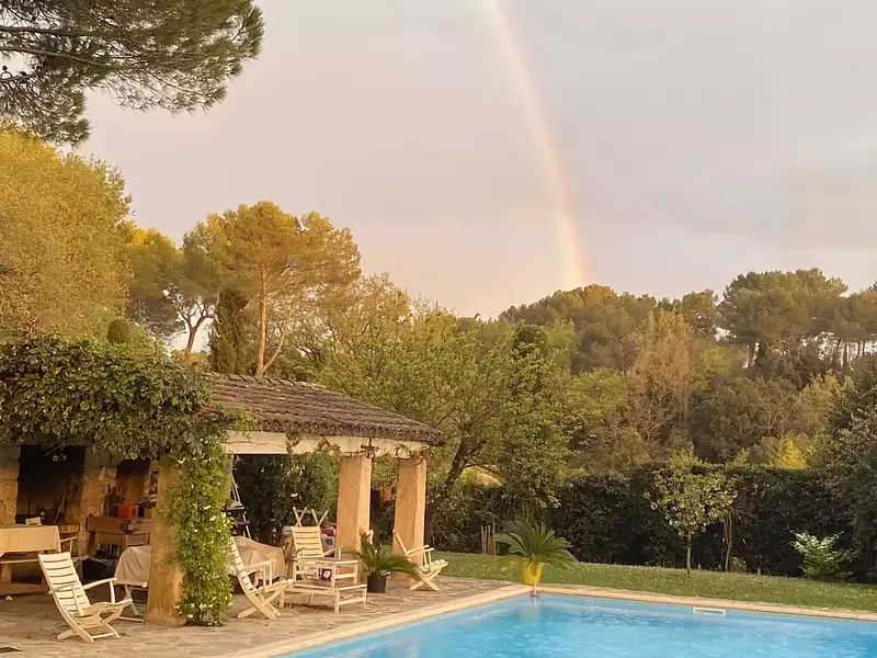 A l'extérieur, vous profiterez d'un magnifique jardin plat, soigneusement entretenu agrémenté d'une piscine exposée sud de 11,50m x 4,50m et d'un pool house.
