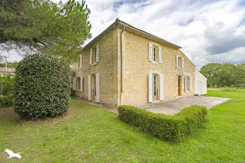 Charentaise rénovée avec goût, à deux pas du port de Barzan. Vaste pièce de vie lumineuse, cuisine équipée, 5 chambres, 2 salles d'eau. Terrain arboré avec puit, terrasse et grand garage. Confort moderne: chauffage central, huisseries neuves, toiture refaite. Coup de coeur assuré!