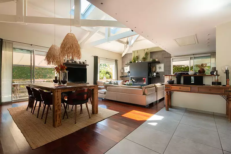 Dans un quartier résidentiel calme et proche de toutes les commodités de Carbon-Blanc, cette belle maison de plus de 200 m² est idéale pour une vie de famille confortable et sereine. Elle se compose d'une vaste pièce de vie baignée de lumière avec salon, salle à manger et cuisine ouverte, offrant un espace central chaleureux et convivial. Cinq chambres vous attendent, dont deux suites parentales dont une à l'étage, dotée de sa propre salle d'eau et d'une terrasse privative dominant le quartier. Un espace bureau permet de concilier vie professionnelle et personnelle en toute sérénité, tandis qu'une grande buanderie facilite l'organisation du quotidien. La maison dispose de très belles prestations dont un chauffage de type gainable, une belle cheminée dans le salon, et un ballon thermodynamique. A l'extérieur, vous profiterez d'un jardin agréable et d'une grande terrasse couverte, idéale pour les repas en plein air ou les moments de détente, quelles que soient les saisons. Côté stationnement et rangement, un garage indépendant de 50 m² avec cave offre de multiples possibilités : véhicules, atelier, stockage ou encore espace de bricolage. Située à proximité immédiate des écoles, des commerces, des transports et des axes principaux vers Bordeaux, cette maison allie surface, confort et emplacement pratique pour le quotidien familial. Un bien rare sur le secteur, à découvrir rapidement ! Vincent LAPP (EI) Agent Commercial - Numéro RSAC : - .