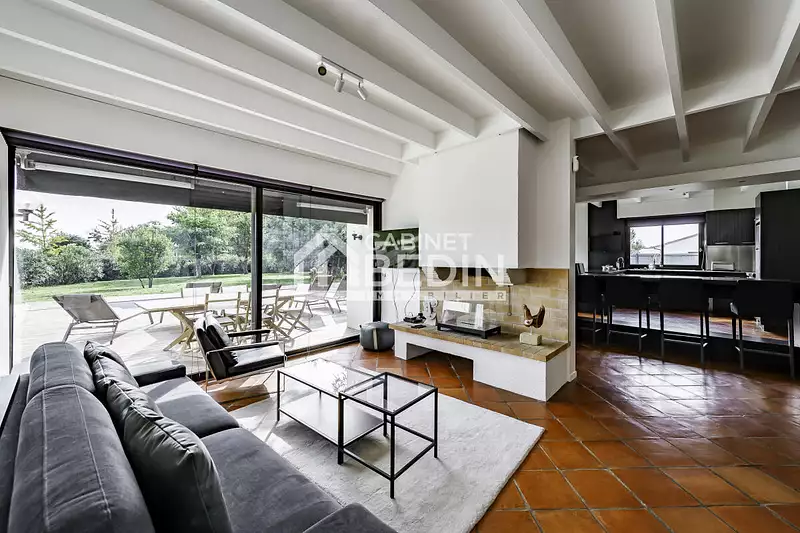 Exclusivité CABINET BEDIN - Maison d’architecte rénovée à Libourne. Découvrez cette maison d’architecte rénovée à Libourne, nichée dans un cadre privilégié proche des commerces. Elle offre 203 m² de surface habitable sur un terrain de 1 935 m², alliant élégance contemporaine et charme de l’ancien. Les prestations haut de gamme et l’agencement moderne créent un espace fluide et chaleureux. Profitez d’un vaste séjour lumineux, d’une cuisine ouverte conviviale et de plusieurs chambres aux finitions soignées. La rénovation valorise des matériaux nobles, apportant une ambiance raffinée. À l’extérieur, une piscine creusée et une terrasse en bois exotique complètent ce bien rare. Une cave complète cette propriété d’exception. . Les informations sur les risques auxquels ce bien est exposé sont disponibles sur le site Géorisques : www. georisques. gouv. fr. Montant estimé des dépenses annuelles d’énergie pour un usage standard : entre 2140 et 2950 Euros/an (année de référence 2021)