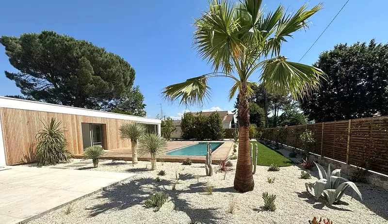 Le séjour extrêmement lumineux profite de grandes ouvertures permettant d'accéder à une terrasse ensoleillée de 110 m2 pour des moments de détente et s'ouvre sur une belle piscine chauffée, un pool house de 27m2 composé d'une pièce de vie modulable en chambres une salle d'eau et un wc, un boulodrome et un garage. Le jardin soigné, aux plantations exotiques vous offre bien être, calme et intimité.
