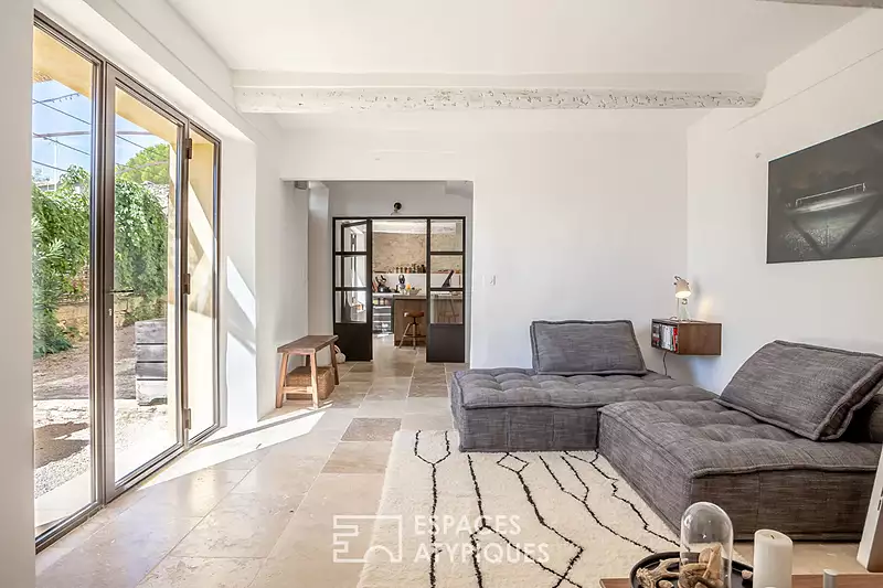 C'est au coeur d'un hameau posé sur les contreforts des monts de Vaucluse, à 5 km du village de Saint-Saturnin-lès-Apt, que cette élégante et typique maison d'environ 200 m², a été entièrement rénovée avec soin et sobriété. Sans vis-à-vis, avec une jolie vue et un jardin, ce bien est rare au coeur des villages. Sa rénovation a su parfaitement créer un équilibre entre le caractère authentique de cette bâtisse et une modernité raffinée et chic. Toute la maison offre des pièces avec de beaux volumes, ou la lumière est omniprésente. Les matériaux utilisés, comme le travertin au sol, les poutres apparentes des plafonds, les portes-fenêtres en fer forgé sont en parfaite harmonie avec la mémoire du lieu. Conçue pour la vie de famille et pour recevoir les amis, c'est avant tout l'espace, la lumière et les matériaux de qualité qui ont guidé sa réhabilitation. Une spacieuse pièce à vivre de 70 m² environ, avec trois portes-fenêtres donnant accès à la terrasse et une élégante cuisine toute équipée ont été imaginées pour la convivialité et le confort de vie. Un magnifique escalier central inondé par un puit de lumière nous amène aux espaces nuits distribués sur deux niveaux. Le premier niveau composé d'une suite avec douche à l'Italienne et d'un bureau offre un espace indépendant. Le second étage propose 4 belles suites baignées de lumière avec vues sur le Luberon, dont une avec baignoire sur pieds, trois autres douches à l'italienne. Le troisième étage offre un espace de 75 m² environ au volume incroyable, ou la lumière jailli de tous côtés , avec une belle hauteur de plafonds en sous-pentes, lieu idéal pour la création, le télétravail, ou pourquoi pas, une bibliothèque avec son coin télé. Une buanderie de 6 m2 et un garage à vélos/cellier de 30 m², viennent compléter ce lieu. Cette maison n'attend plus que son paysagiste pour finir de parer de ses plus beaux atours le jardin de 60m2 et commencer sa nouvelle vie. CLASSE ÉNERGIE : D CLASSE CLIMAT : B Montant moyen estimé des dépenses annuelles d'énergie pour un usage standard, établi à partir des prix de l'énergie de l'année 2021 : entre 3950 et 5400 euros Les informations sur les risques auxquels ce bien est exposé sont disponibles sur le site Géorisques: www.georisques.gouv.fr Noémie VERGNAS (EI) Agent Commercial - Numéro RSAC : 432 750 552 - Avignon.