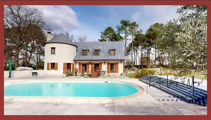 ENTRE VOUS ET NOUS votre agence immobilière d 'Auros vous invite à découvrir cette belle propriété familiale de plus de 200m² et son sous sol sur prés de 8800m² de terrain arboré sans vis à vis située à 10 mn de Langon.