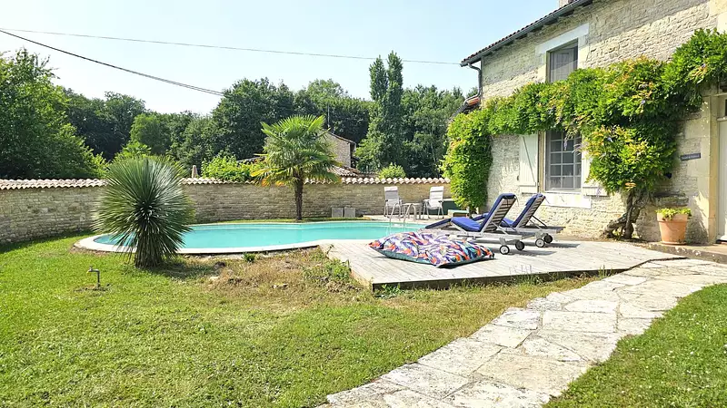 Piscine avec terrasse, idéale pour se détendre et manger en plein air.