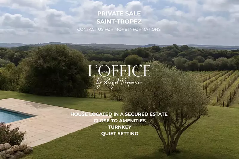 Cette charmante villa provençale d’environ 205 m², offrant 5 chambres, est édifiée sur un magnifique terrain de 6 200 m² avec piscine, garage et son propre vignoble privé de 3 850 m² — un atout exceptionnel à Saint-Tropez.