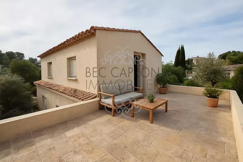 Élégante maison de ville, implantée sur un terrain de 660 m2 exposé plein sud dans un quartier résidentiel recherché. Lumineuse et fonctionnelle, cette maison déploie au rez-de-chaussée un vaste espace de vie de 66 m2 avec cuisine contemporaine ouverte et équipée, salon et salle à manger, complété par une salle d’eau et un WC invités. L’étage accueille quatre chambres élégantes, une salle d’eau raffinée avec douche à l’italienne et baignoire, un WC indépendant ainsi qu’un toit-terrasse. Un appartement indépendant de type T2 de 40 m2 vient enrichir la propriété, offrant de multiples possibilités : dépendance pour recevoir de la famille, projet locatif ou bureau. Le confort est assuré en toutes saisons par une climatisation gainable, tandis que deux garages (21,49 m2 et 18 m2) complètent cet ensemble. Alliant charme, volumes généreux et excellente performance énergétique, cette demeure rare séduit par sa polyvalence avec trois accès indépendants, et constitue une adresse privilégiée pour une grande famille, l’exercice d’une profession libérale.