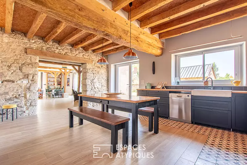 A quelques minutes de l'agréable commune de Brissac-Quincé, cette belle maison ancienne fait corps avec la nature environnante. Elle dévoile une surface habitable d'environ 206 m² et s'inscrit dans un cadre de vie bucolique et préservé d'environ 6 000 m². Une ambiance élégante et contemporaine distingue cette maison singulière revisitée pour un confort absolu. Les dépendances de caractère témoignent de l'authenticité du lieu. Avec ses vastes volumes décloisonnés, rythmés de poutres en bois et grandes baies vitrées, la cuisine fonctionnelle et la pièce à vivre agrémentée d'un poêle à bois s'orchestrent pour créer un sublime espace de vie chaleureux et lumineux ouvert généreusement sur le jardin. Tout en transparence et légèreté, l'escalier dessert les espaces nuit à l'étage. Réorganisé dans le même esprit de lumière et simplicité, ce niveau fait la part belle à la suite parentale en la dissociant de trois chambres spacieuses et salle d'eau. Une salle d'eau ainsi qu'une lingerie complètent le rez-de-chaussée. Côté dépendances, une belle grange avec atelier, une maisonnette à restaurer et d'anciennes soues viennent parfaire harmonieusement l'ensemble. L'extérieur, quant à lui, s'adresse aux amoureux de la nature. Ce lieu de vie authentique et convivial offre un cadre de vie idéal pour se retrouver en famille et recevoir les amis. A quelques minutes des commodités de Brissac-Quincé et Thouarcé , à 25 minutes de la gare TGV Angers-Saint Laud. CLASSE ENERGIE : A - CLASSE CLIMAT : A - Montant moyen estimé des dépenses annuelles d'énergie pour un usage standard établi à partir des prix de l'énergie de l'année 2021 : entre 610 euros et 870 euros. Contact : Valérie Sinquin 06 02 18 65 59 EI - Agent commercial immatriculé au RSAC Angers n° 512 543 166 Les honoraires sont à la charge du vendeur. Les informations sur les risques auxquels ce bien est exposé sont disponibles sur le site Géorisques pour les zones concernées: www.georisques.gouv.fr