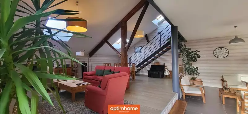 Au rez-de-chaussée, vous serez séduits par une superbe pièce à vivre de plus de 100m² agrémentée d'une cheminée, avec un accès vers l'extérieur, qui permet de créer différents espaces. La cuisine (Aviva) entièrement ouverte sur le salon-séjour offre un espace convivial et chaleureux, idéal pour partager des repas en famille ou entre amis. Ce niveau comprend également une salle d'eau, un wc indépendant, ainsi qu'une pièce de 21m² actuellement aménagée en salon pouvant faire office de chambre, permettant ainsi un véritable confort de vie de plain-pied.