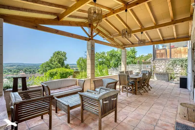 Au pied de la bastide avec une vue panoramique sur la vallée,cette maison en pierre avec un jardin se compose de deux logements indépendants dont un de plain-pied.Chacun dispose d'une terrasse et d'une cuisine équipée et ouverte sur la pièce de vie, de deux à trois chambres dont une parentale avec salle de bain et deux salles d'eau