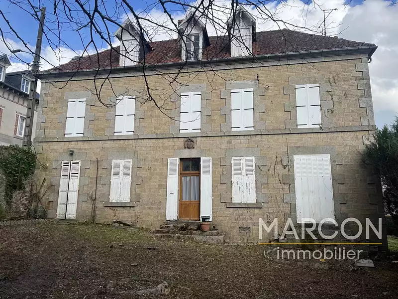 Felletin. Ref: 88867. Proximité centre ville, très belle maison comprenant en rez-de-chaussée: entrée, cuisine,trois pièces, bureau, réserve, wc. 1er étage: 1 er étage: couloir, 4 chambres, salle de bains, salle d'eau, wc. 2ème étage: une chambre, une petite chambre mansardée. Grenier aménageable. Chauffage central au fuel. Garage. Jardin. Le tout sur un terrain de 982 m². Prix: 125 000 euros (honoraires agence compris de 8.69% à la charge de l'acquéreur). MARCON IMMOBILIER réseau de 3 agences AUBUSSON GUERET LA SOUTERRAINE.