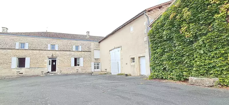 Maison charentaise d'environ 207 m² , grange et diverses dépendances. Composée au rez-de-chaussée, d'une belle entrée, d'une salle à manger avec cheminée, d'une cuisine aménagée, d'un cellier/buanderie, d'un salon, d'une salle d'eau, d'un wc, de deux chambres spacieuses. À l'étage, d'une chambre et grenier aménageable. Deux pièces attenants à rénover (point d'eau), d'une cave avec chaufferie, citerne avec pompe. Viennent compléter cet ensemble immobilier, une belle grange avec écurie, diverses dépendances, un préau pour garer les voitures, ainsi qu'un hangar d'environ 200 m² sur un terrain clos et arboré d'environ 3300 m². Contactez votre Agent AXO - L'immobilier Actif au 06 86 54 47 74, Sao PIRES (EI) Agent Commercial RSAC 450.702.493 Angoulême. Plus d'informations sur (réf. 85002120607). Prix TTC 198 500 € (Honoraires à charge vendeur) Les informations sur les risques auxquels ce bien est exposé sont disponibles sur le site Géorisques : https://www.georisques.gouv.fr/