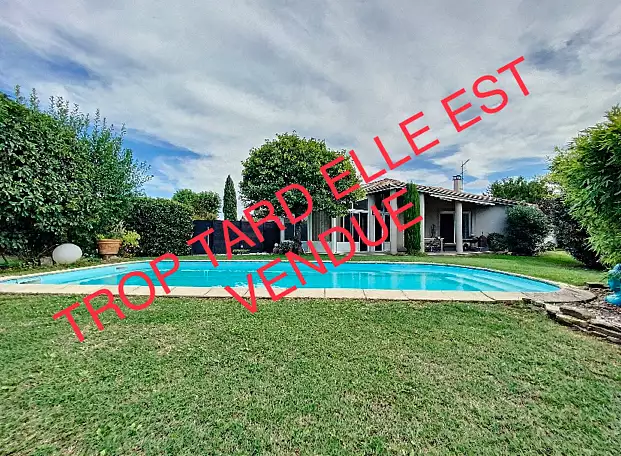 Le Cabinet VetD Immobilier vous présente en exclusivité cette belle maison d'architecte de 152m2 habitable, Garage attenant de 35m2, deux abris de jardin de 11 et 9 m2 respectivement. Bien entretenue et de plain-pied, elle est édifiée dans un écrin de verdure au calme et sans vis-à-vis, sur un beau terrain d'environ 1800m2 entièrement clos et arboré. Proche des écoles, accès bus à 1 min à pied et à 5 min en voiture du centre ville de Muret. Cette maison entièrement bâtie sur vide sanitaire, toiture en charpente traditionnelle et brique maçonnée sera vous séduire par son style architectural. Vous profiterez d'un bel espace de vie bien exposé et lumineux avec plafond cathédrale et cheminée, ouvert sur une terrasse couverte et une seconde plus intimiste, une cuisine aménagée, équipée et son cellier attenant (possibilité de réhabiliter une cave en dessous), une véranda chauffée et isolée pour vous permettre de profiter de toutes les saisons. 3 belles chambres avec placard dont une suite avec salle d'eau attenante pourront accueillir votre famille, une pièce supplémentaire à été soigneusement aménagée en deux espaces, un coin bureau et un dressing. Une grande salle d'eau et un WC séparé viennent compléter les commodités. Vous bénéficierez d'un environnement entièrement clos et intimiste avec une parcelle de terrain agrémentée d'une piscine construite par "Charlie Ménoir", des essences d'arbres multiples ( arbres fruitiers, liquidambar, tulipier, ... ) d'un double garage fermé avec deux portes isolées motorisées et mezzanine de rangement, d'un puit avec l'arrosage intégré, de deux cabanons de jardin maçonnés. D'un accès à la maison par un portail automatique. (3.40 % honoraires TTC à la charge de l'acquéreur.)
