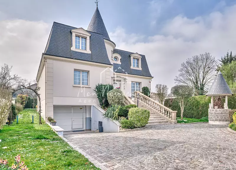 Mon Nouveau 207m² ! Situation exceptionnelle ! Face Marne ! Maison Mansard sur une parcelle de 704m² comprenant au rez-de-chaussée entrée, triple séjour traversant baigné de lumière avec accès direct sur terrasses et jardin, cuisine aménagée - équipée et arrière cuisine, chambre d'amis avec salle d'eau, water-closet. L'escalier enroulé dans une tourelle mène au palier du premier étage distribuant trois grandes chambres avec salle d'eau, salle de bains et water-closet. Le sous sol divisé accueille un espace de vie comprenant chambre, salle d'eau, water-closet et buanderie, une autre partie est consacrée à un grand espace de stationnement, grande cave à vin et chaufferie. De beaux espaces et de jolies prestations dans un cadre extraordinaire !