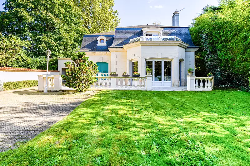 A proximité de la gare, des écoles et des commerces, cette élégante maison de style Mansart, construite en 1999, offre une superficie de 208 m² habitables et est édifiée sur un sous-sol total, l'ensemble sur un terrain de plus de 1 300 m². Au rez-de-chaussée, elle dispose d'un hall d'entrée, d'un vaste séjour traversant ouvrant sur deux terrasses, d'une cuisine aménagée, d'une suite parentale et d'un WC. A l'étage, vous trouverez trois chambres, dont une suite parentale avec dressing et salle de bains, ainsi qu'une salle d'eau indépendante et un WC. Le sous-sol total comprend une buanderie, une cave à vin climatisée et deux salles de jeux. Un garage attenant permet de stationner deux véhicules, une prise de force à été installée pour pouvoir charger un véhicule électrique. Un superbe jardin vient compléter ce bien d'exception ! (4.00 % honoraires TTC à la charge de l'acquéreur.)