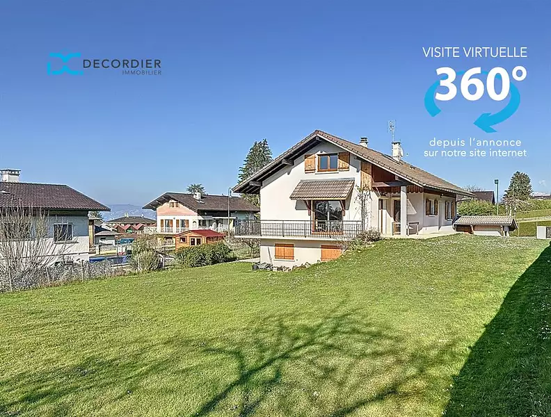 À vendre sur la commune de Neuvecelle, dans un secteur très calme, résidentiel et familial : grande maison de type 8 avec 6 chambres de 208,24 m² construite en 1987 sur un terrain plat et clôt de 1 517 m². En très bon état, elle se compose au niveau 0 comme suit : entrée, dégagement, salon, deux chambres, coin cuisine, salle d'eau, WC, cave à vin, buanderie, pièce de rangement. Au niveau 1 : entrée, hall/dégagement, troisième et quatrième chambres, pièce à vivre avec séjour cathédrale, cuisine équipée, WC, salle de bains avec baignoire et douche, terrasse et balcon. Au niveau 2 : cinquième et sixième chambres, mezzanine, salle d'eau, WC. Triple exposition Nord/Ouest/Sud dans la pièce à vivre, jolie vue montagnes, portail électrique, garage de 28,71 m². Possibilité de créer très facilement un logement indépendant au rez (deux compteurs électriques, deux cumulus). Une maison fonctionnelle et familiale à découvrir sans tarder dans votre agence DECORDIER immobilier Evian !