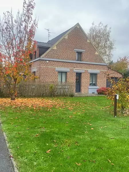 PAVILLON INDIVIDUEL à 30 minutes de Lille de 208m2 érigé sur 1550m2 terrain arboré sans aucun vis à vis et clos de murs, terrasse 45m2 expo sud ouest. RDC, s.a m séjour salon 75m2 en L très lumineux. Cuisine équipée, véranda, sdbain baignoire & douche, wc ind, bureau. Etage, palier mezzanine, 3 chambres dont 1 suite parentale avec dressing, sdb douche, wc ind. Cave, Garage 2 voitures, lingerie, buanderie. Parkings 5/6 voitures, 2 portails, alarme. La maison est située en retrait de rue au calme. Proche axes autoroutiers & tous commerces. Prestations de qualité. Chaudière Gaz De Dietrich.