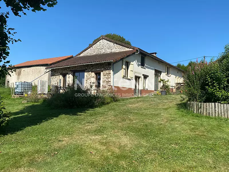Maison principale d'environ 140 m², offrant 3 chambres, dont une belle suite parentale à l'étage avec salle de bains et douche et d'une seconde salle d'eau avec WC. L'espace de vie, particulièrement lumineux, s'ouvre sur une généreuse pièce à vivre prolongée par une terrasse offrant une vue imprenable. Un cadre idéal pour profiter pleinement de l'environnement. Un charmant gîte indépendant d'environ 64 m² vient compléter l'ensemble. Il dispose d'une chambre spacieuse et constitue un excellent atout pour accueillir famille et amis, ou pour générer un revenu locatif. L'ensemble a été aménagé avec goût et ne nécessite aucun travaux. Vous n'avez plus qu'à poser vos valises. Enfin, une grange vient parfaire cette propriété pleine de charme et de potentiel. Contactez votre agence immobilière Nestenn de Nontron pour une visite de ce bien, au ? 05 53 56 90 70 (5.82 % honoraires TTC à la charge de l'acquéreur.)