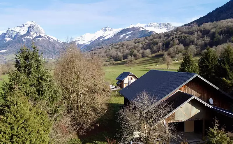 La maison possède également deux grands garages, un parking un magnifique terrain d’une superficie d’environ 1894 m² avec une vue exceptionnelle sur les montagnes des Hautes-Bauges. Dimensions du bâtiment 15 m Longueur sur 12 mètres de Largeur. - Assainissement individuel à prévoir - chauffage au gaz – poêle avec conduit tubé – chauffe-eau électrique – volets électriques sur baies vitrées – Accessibilité PMR - Vide sanitaire – Contact Gisèle 0679197139 ou Killian 0770546293