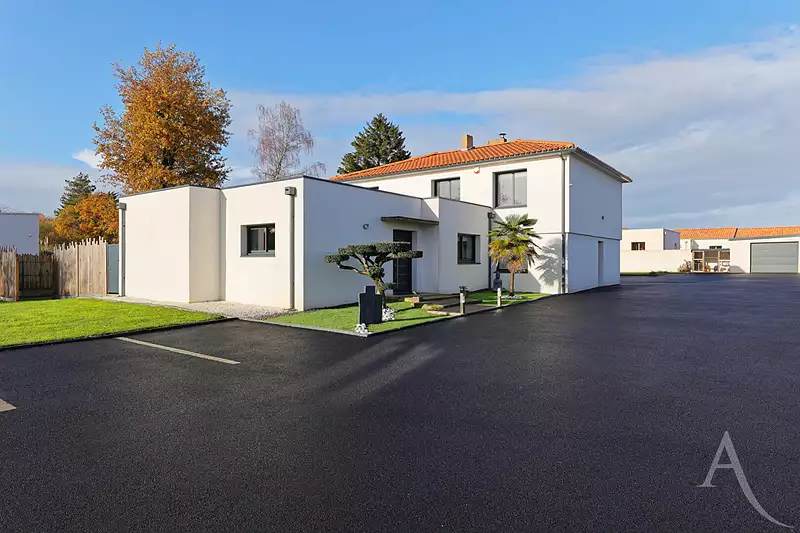 L'Agence L'Adresse Legé vous propose en Exclusivité de venir découvrir ce superbe pavillon revisitée avec une rénovation intégrale en 2022, alliée à une extension contemporaine réalisée la même année. Plus de 200 m² de surface habitable sur une parcelle entièrement close d'environ 1888 m², en situation extrabourg de la commune de Legé. Le bien disposera de cinq chambres, offrant une capacité d'accueil confortable et adaptée ou besoins familiaux ou professionnelles. L'ensemble bénificie d'une distribution fonctionnelle et super lumineuse, de prestations haut de gamme et d'un confort thermique optimisé. Les aménagements extérieurs incluent une piscine chauffée intégrée dans un environnement paysager structuré, une pergola ainsi qu'un double garage permettant stationnement et espace de stockage. Une propriété aboutie, tant dans la conception que dans les finitions, permettant une installation sans travaux et un cadre de vie qualitatif à proximité des axes et des commodités. Pour visiter contactez-nous au 0614844129 ou sur Vidéos disponibles sur demande. Cyril GAREL (EI) Agent Commercial - Numéro RSAC : 832 256 572 - LA ROCHE SUR YON.