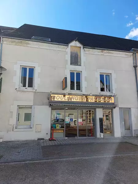 Saint Laurent nouan, immeuble comprenant : un commerce en rez de chaussée avec un espace boutique, un fournil, une grande pièce et un vestiaire. Un appartement composé d'une cuisine, une salle d'eau, trois chambres et un bureau. En plus deux greniers aménageables de 32m² et 110m².