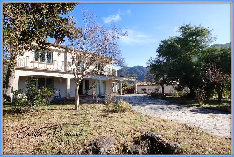 Située dans un quartier résidentiel très calme d'Arles-sur-Tech(66150), à proximité des thermes d'Amélie-les-Bains et non loin de la frontière espagnole, cette superbe villa des années 70, 4 faces, offre un cadre de vie privilégié, très ensoleillé et ouvert sur les montagnes.