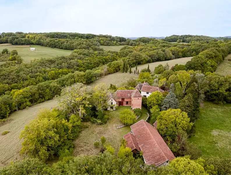 Au coeur du Quercy, à 1h de l’aéroport de Toulouse et 20mn de Cahors, cet ancien corps de ferme niché dans un écrin de verdure paisible et isolé au milieu de 67ha de forêts et prairies vallonnées.