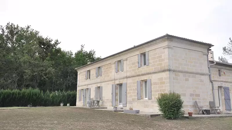 Cette propriété d'époque en pierre est située dans une paisible campagne à 20 km des vignobles de Saint Emilion.