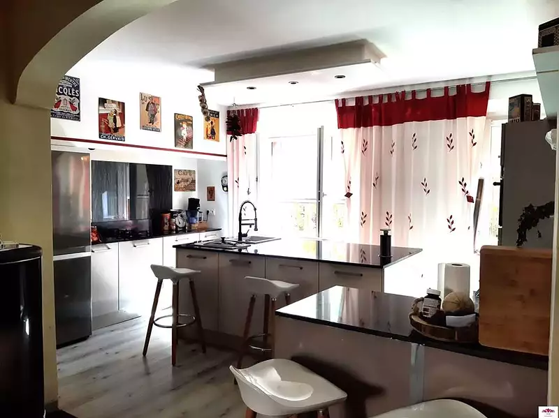 Agréable maison de village de 200m² avec un jolie cour, elle est composée de 6 chambres, dont 2 avec clim réversible, un bureau, un séjour avec poêle à granulés ouvert sur une grande cuisine aménagée équipée, un cellier...