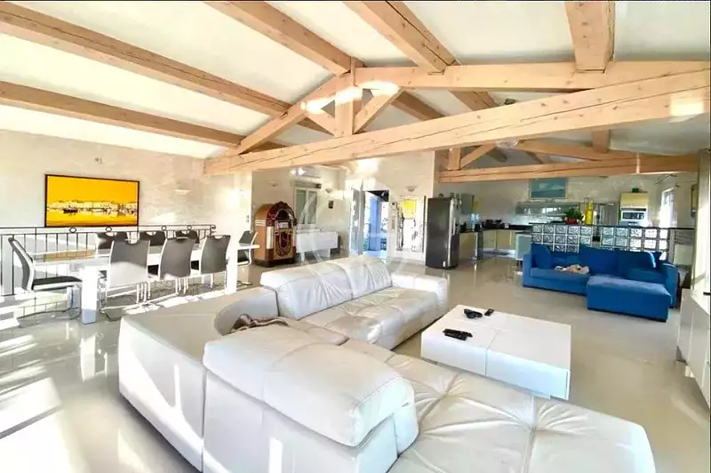 Pour compléter ce bien, une piscine 15 x 6,5 chauffée avec plongeoir construite sur un terrain d'environ 900 m2, ainsi que 3 parkings couverts, forage.