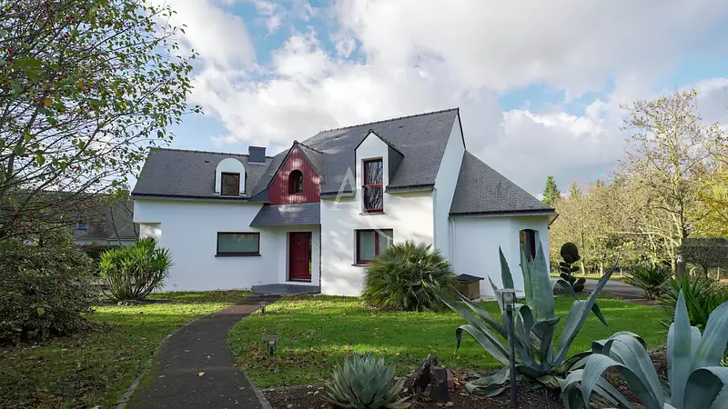 PLOERMEL, Maison d'architecte de 210 m² située dans un secteur recherché, au calme d'une impasse à moins de 10 minutes à pieds du centre ville. Elle offre au rez-de-chaussée une spacieuse suite parentale avec dressing et salle d'eau, une belle pièce de vie lumineuse ouverte sur une cuisine aménagée et équipée, le tout donnant accès à une terrasse sans vis-à-vis. A l'étage, vous trouverez trois chambres, un bureau, une mezzanine lumineuse avec balcon ainsi qu'une salle de bain équipée d'une baignoire et d'une douche. L'extérieur propose un parc entièrement clos de plus de 3000 m², idéal pour profiter pleinement du calme et de l'intimité des lieux. Un garage, un espace buanderie et une cave complètent cette propriété aux prestations de qualité. Assainissement tout à l'égout, chauffage gaz de ville, aspiration centralisée. Le CONFORT, la QUALITE et la PROXIMITE des services réunis pour ce bien d'exception dans un quartier prisé ! Nicolas POYAC (EI) Agent Commercial - Numéro RSAC : 911568640 - VANNES.