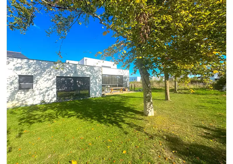 Située dans la commune prisée de Saint-Barthélemy-d'Anjou, à seulement 10 minutes en voiture du centre-ville d'Angers, venez découvrir cette magnifique maison contemporaine de 2024 d'une surface de 208 m², édifiée sur une parcelle arborée d'environ 900 m². Cette belle maison offre des volumes spacieux et lumineux, avec un vaste salon-séjour de plus de 50 m² entouré de grandes baies vitrées, ouvert sur le jardin paysagé et une grande terrasse en bois. Au rez-de-chaussée, une suite parentale comprend un dressing, une salle d'eau privative, ainsi qu'un accès direct au jardin par une baie vitrée et un second accès donnant sur un patio. Une grande cuisine aménagée et équipée de plus de 20 m², une buanderie/arrière-cuisine, un cellier et un WC complètent ce niveau. A l'étage, vous trouverez trois grandes chambres d'environ 15 m² chacune, une salle d'eau et un WC séparé. Un garage ainsi que cinq places de stationnement privatives à l'avant de la maison permettent de se garer en toute tranquillité. Le jardin arboré complète ce bien d'exception. Système de chauffage : pompe à chaleur avec plancher chauffant au rez-de-chaussée et à l'étage. Équipements : 12 panneaux solaires permettant de compenser une partie des consommations annuelles. Taxe foncière : environ 2 000 euros DPE : A / A Pour plus d'informations ou organiser une visite, vous pouvez me joindre au o6 84 89 04 24 Prix net vendeur : 650 000 euros Honoraires à la charge de l'acquéreur : 26 000 euros TTC Les informations sur les risques auxquels ce bien est exposé sont disponibles sur le site Géorisques : www.georisques.gouv.fr (4.00 % honoraires TTC à la charge de l'acquéreur.)