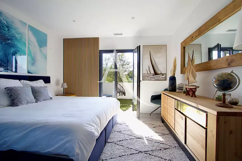 Villa contemporaine d'exception de 2020 Prestations haut de gamme et double rentabilité possible ! Découvrez cette somptueuse villa contemporaine de 2020, alliance parfaite entre design, confort et raffinement, nichée dans un cadre paisible et verdoyant à l'esprit Bali. Dès l'entrée, vous serez séduit par les volumes et la luminosité du vaste salon-séjour sublimé par sa cuisine américaine haut de gamme entièrement équipée et sa cave à vin intégrée, idéale pour recevoir en toute élégance. Une buanderie fonctionnelle et un WC indépendant complètent le rez-de-chaussée. A l'étage, place à l'espace nuit : Deux chambres avec dressing et une salle d'eau commune Une troisième chambre avec placard Un bureau lumineux Une salle de bain spacieuse pour des moments de détente Une terrasse en pelouse synthétique, façon rooftop, offrant une vue dégagée et un espace de vie extérieur supplémentaire. Côté bien-être, la villa vous offre deux piscines : Une piscine extérieure baignée de soleil pour vos journées d'été Une piscine intérieure chauffée, véritable atout pour en profiter toute l'année Les extérieurs sont tout aussi soignés : Cuisine d'été équipée avec barbecue Terrasse conviviale pour vos repas entre amis Boulodrome pour des soirées détente Jardin paysager à l'ambiance zen et exotique ATOUT MAJEUR : La maison dispose de deux dépendances attenantes et communicantes, idéales pour recevoir ou générer un revenu complémentaire (100 euros/nuit pour les deux logements avec un remplissage annuel quasi total !) Un studio avec chambre et salle d'eau Un studio avec mezzanine, comprenant chambre, salle de douche et kitchenette Une propriété rare sur le marché, offrant confort, élégance et polyvalence. Un véritable havre de paix où tout a été pensé dans les moindres détails. Coup de coeur garanti ANNE Julie (EI) Agent Commercial - Numéro RSAC : 837 607 373 - Montpellier.