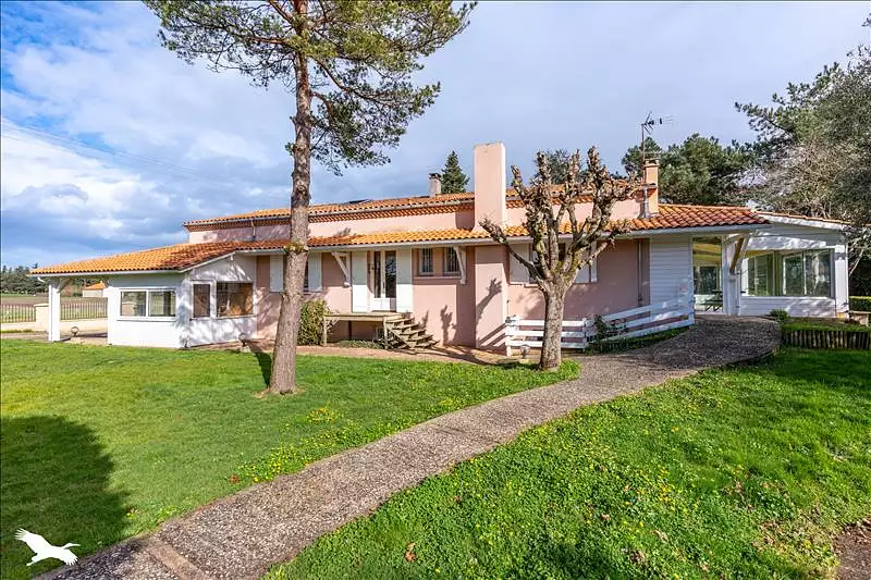 Spacieuse maison familiale dotée d’une véranda, d’un large séjour avec cuisine équipée, de 4 chambres et d'une suite. Sous-sol avec garage. Grand parc arboré comprenant fruitiers et puits, offrant un cadre de campagne paisible. Située à 5 minutes des commodités, cette propriété allie volume, confort et charme.