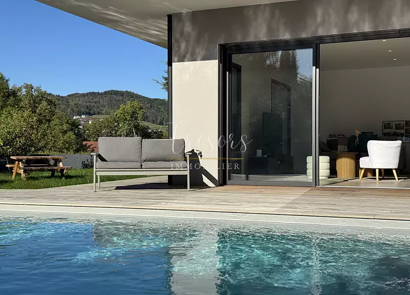 Exclusif, l'agence Trésors Immobilier vous propose cette superbe Villa d'architecte construite en 2023 située dans un quartier, calme, résidentiel et prisé d'Annecy le vieux , à proximité du chef lieu. Edifiée sur un terrain clos et paysagé de 885m², et d'une superficie de 211m² environ, cette villa aux lignes épurées et larges baies vitrées offre un confort de vie et une luminosité des plus agréables. Elle vous propose une belle entrée avec dressing, un joli séjour offrant un espace de vie « dedans - dehors » exposé SUD-OUEST, une cuisine ouverte entièrement équipée et aménagée. Egalement de plain pied une suite parentale avec salle de douche, un WC, une buanderie. A l'étage : Une nouvelle suite parentale avec dressing sur mesure, salle de douche , 3 chambres , un bureau et un espace de stockage, le tout offrant un accès à une seconde terrasse de 50m² en bois exotique. Une piscine chauffée 8*4 pour profiter de jolis moments. Garage double avec porte motorisée. "Bien clés en main, qui n'attend que vous" contact : Charlotte ROBERTET 06 70 83 62 65 mail : agent commercial Charlotte ROBERTET (EI) Agent Commercial - Numéro RSAC : 893567057 - .