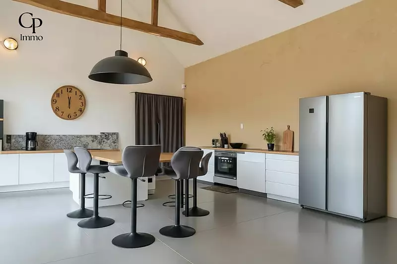 | Cuisine ouverte, équipée | Séjour de 107 m² |