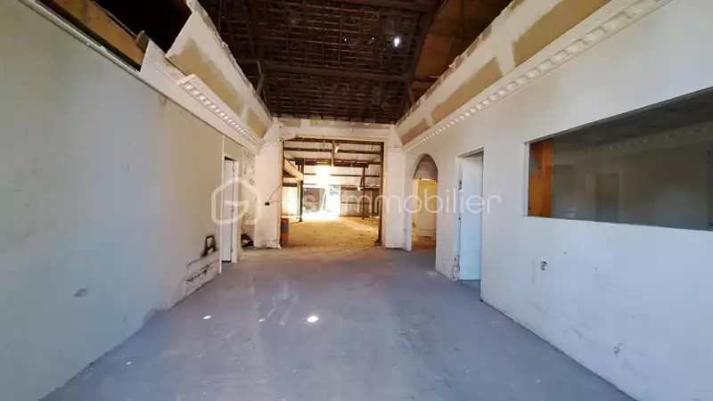 Centre de Châteaubriant, vaste hangar avec bureaux, salle d'eau, wc, garage et jardin.