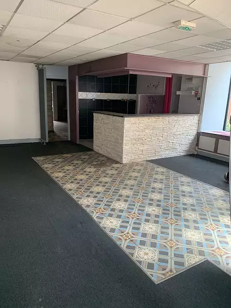 Elle est composée au rez-de-chaussée d'une entrée et d'une grande pièce avec un point d'eau et un WC d'environ 85 m² pouvant servir de commerce ou d'habitation.