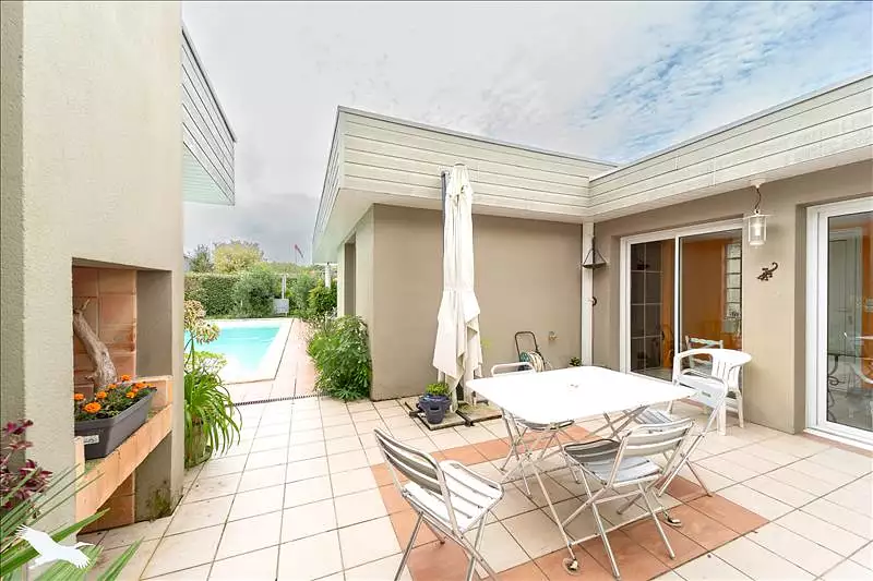 A moins de 10mn dans un quartier calme de La Lande de Fronsac, proche des écoles et des commerces, découvrez cette maison de type architecte aux grands volumes. Elle est composée de 3 chambres avec chacune sa salle d'eau, d'un bureau avec entrée indépendante, une grande pièce de vie lumineuse, carport et piscine.