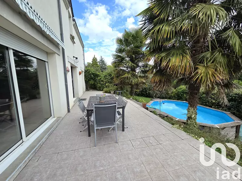 L'espace extérieur est un véritable atout avec un jardin paysager incluant une piscine pour des moments de détente en famille et une terrasse propice aux repas en plein air.